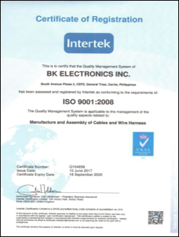 Now that we have already established, maintained, and enhanced our Quality Management System, and through the hard work and dedication of our competent staff, BKEPI has grown to become one of the leading names in the manufacture and supply of Wire Harnesses and Various Cable Assemblies.